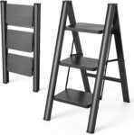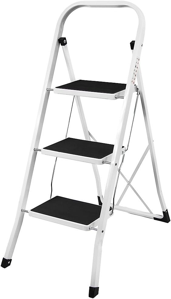 Heavy-duty steel construction with foldable design.Wide, slip-resistant steps for secure footing.