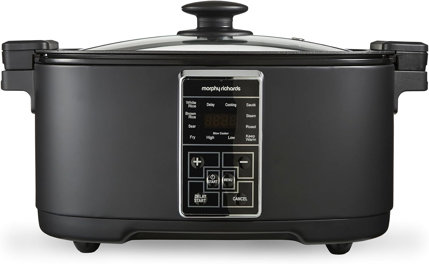 Covers pressure cooking, slow cook, steam, and bake.One-touch control panel and clear display.
